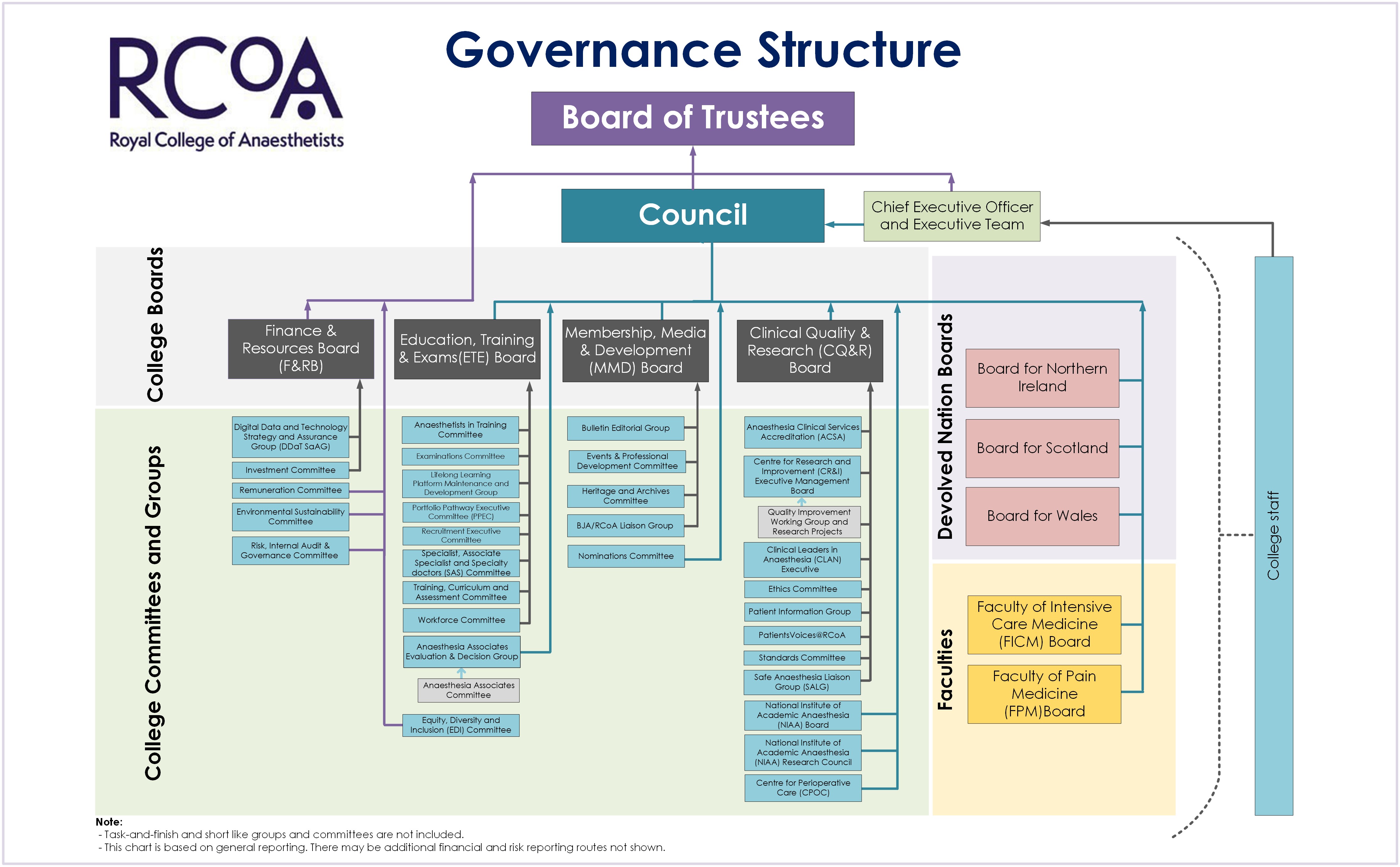 Below is a list of College Boards, Committees and Working Groups, as well as the Chair and administrative contact for each.