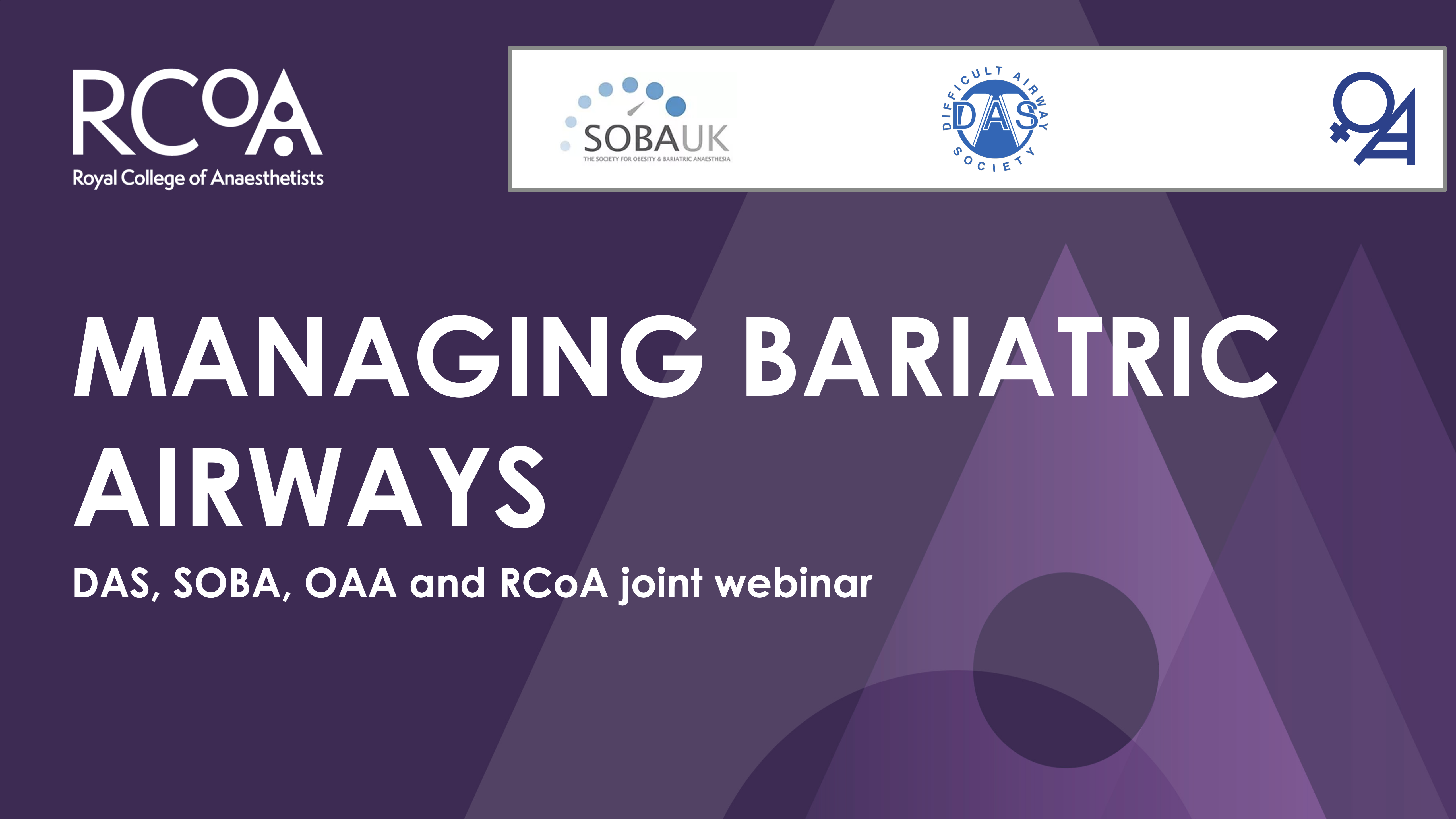 Managing Bariatric Airways - DAS, SOBA, OAA and RCoA joint webinar