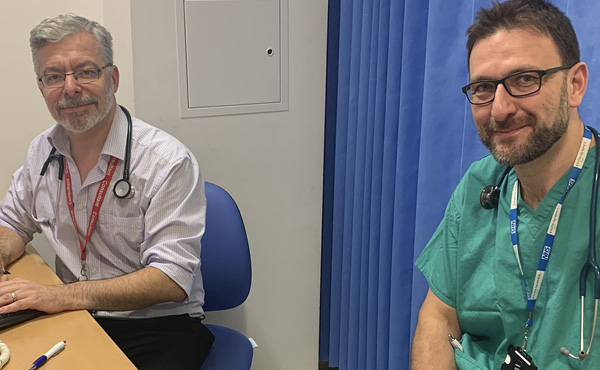 Picture of Dr Biram and his anaesthetic colleague taken prior to COVID-19